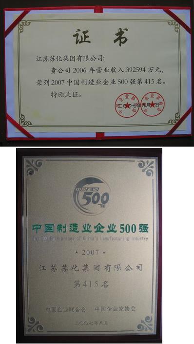 我公司2006年營業(yè)收入392594萬元,在中國企業(yè)聯(lián)合會與中國企業(yè)家協(xié)會聯(lián)合舉辦的2007中國制造業(yè)企業(yè)500強評選中榮列第415名。