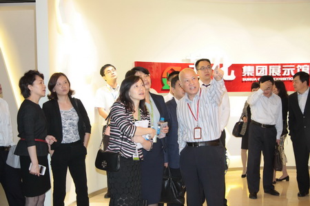 集團董事長楊振華和公司領導提前來到接待大廳迎候各位嘉賓的到來。大家首先聽取了蘇化科技園的組建、運營和發(fā)展情況的介紹,隨后參觀了蘇化集團展示館,饒有興致的聽取了蘇化發(fā)展歷程講解,圖文并茂的展覽和視頻資料等現(xiàn)代化的表現(xiàn)手法,使大家對蘇化60年來的發(fā)展有了更深的了解,增強了對企業(yè)的信貸支持信心。